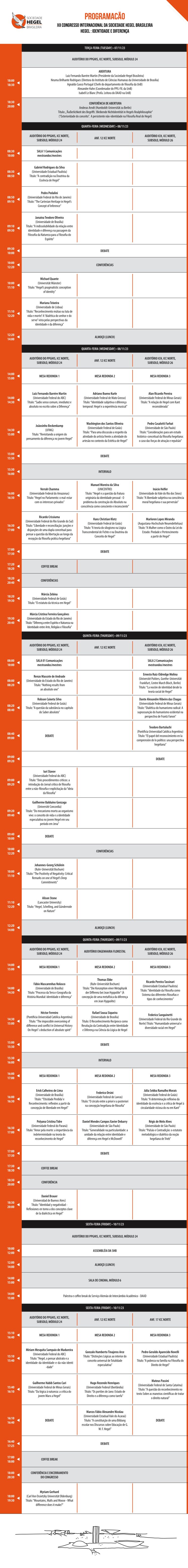 O XII Congresso Internacional da Sociedade Hegel Brasileira pretende abordar nos diversos âmbitos da filosofia hegeliana, por diferentes perspectivas, a relação entre identidade e diferença, tanto tendo em vista a elucidação de aspectos específicos da obra do filósofo, quanto as possíveis articulações da mesma com debates filosóficos contemporâneos.